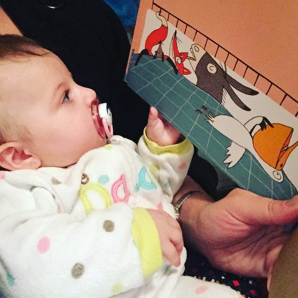 Fiz uma primeira leitura para todos (minha irmã, cunhado, sobrinhas, namorado e até cachorro), apontando os personagens que citava. Depois reli a obra com a Laura no colo, ela está com 3 meses e acompanhou tudinho, se divertiu e deu vários sorrisinhos que fizeram a tia se derreter toda. <3