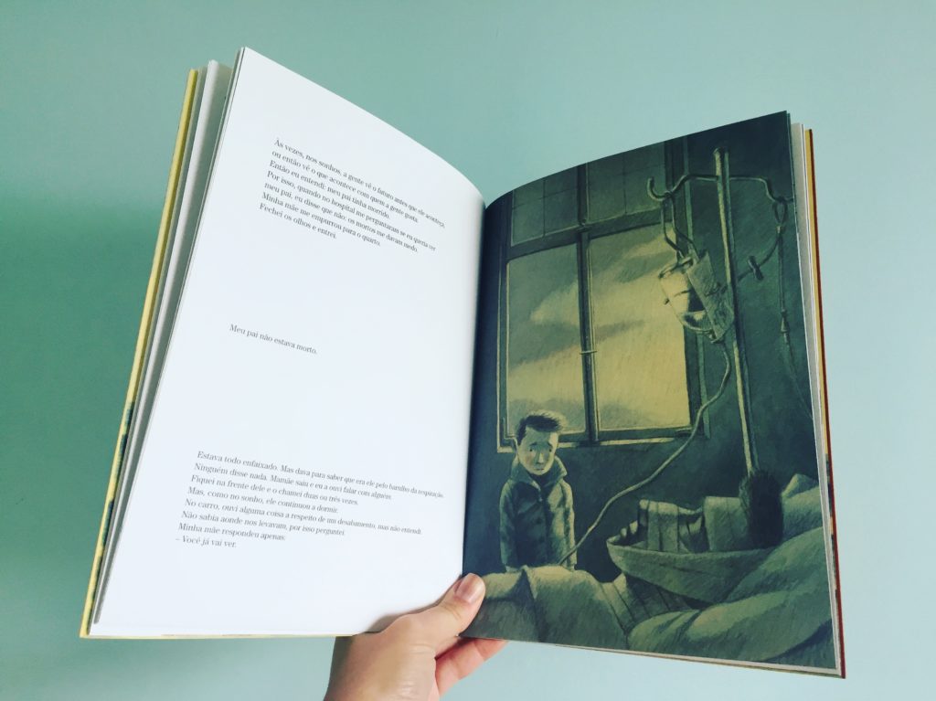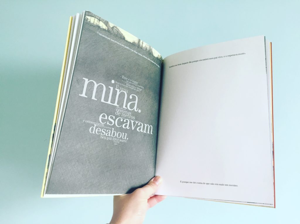 As ilustrações de Maurizio A.C. Quarello são tocantes, cheias de expressividade e revelam muitas coisas não ditas no texto. É bacana de observar a paleta de cores que muda ao longo da história. O trabalho gráfico também é interessantíssimo. Cria vários contrastes e sofre interferências de acordo com o ambiente em que a história se passa.