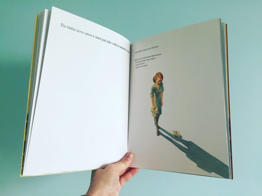 “Meu pai, o grande pirata” é uma história escrita com muita delicadeza por Davide Cali. É narrada em primeira pessoa por um menino que só encontra seu pai uma vez por ano, quando ele voltava depois de uma longa temporada de trabalho.